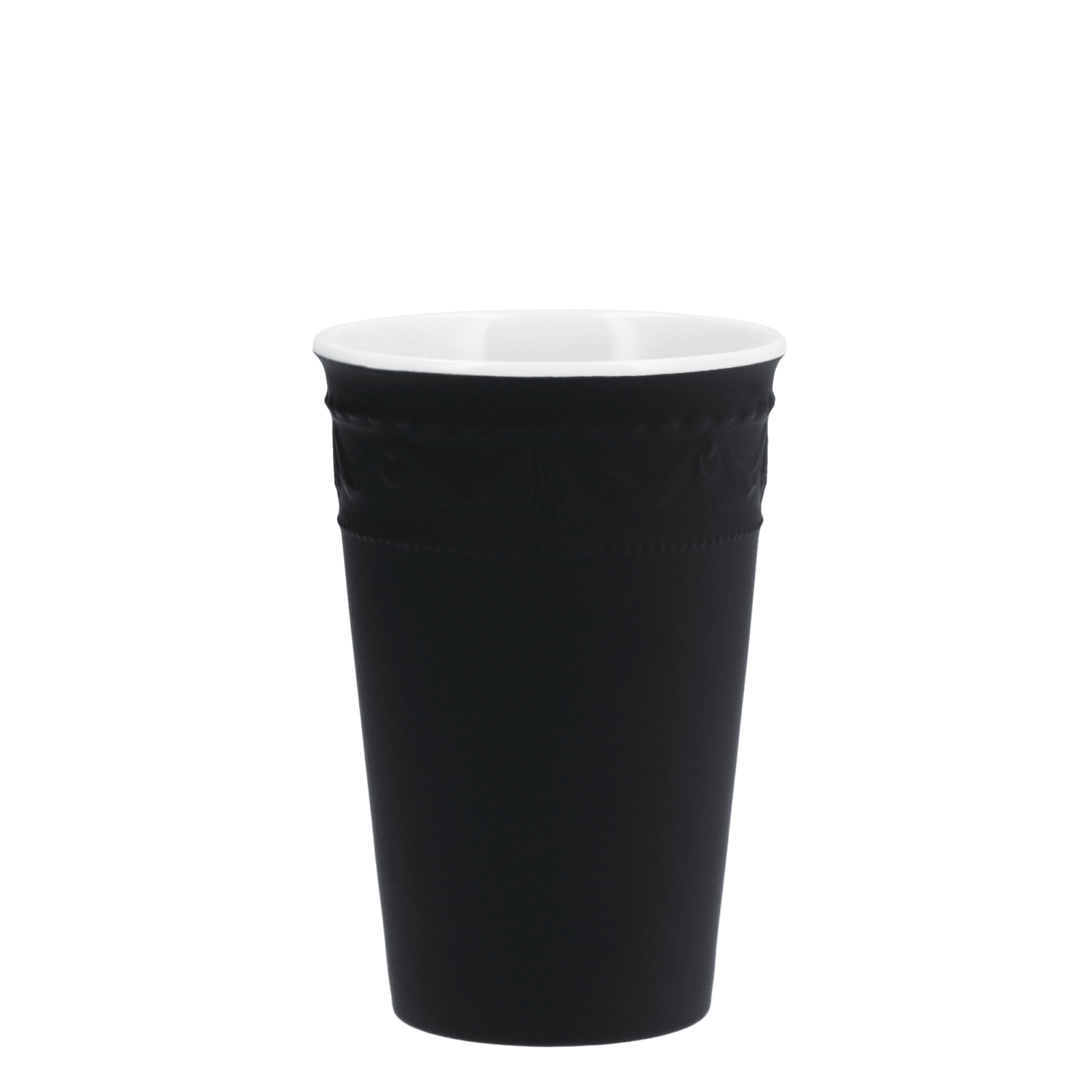 The KURLAND To-go cup in black from Königliche Porzellan Manufaktur combines functionality and elegance at the highest level. The matt finish gives the cup in the KURLAND design from 1790 a velvety feel.