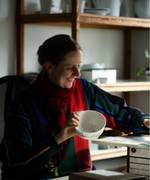 In the medium of porcelain (similar to her otherwise preferred medium of paper), purity, whiteness, and hardness play a major role. "When an ink pen glides effortlessly and wetly over a smooth surface, there is nothing more satisfying for me," the artist sums up.
