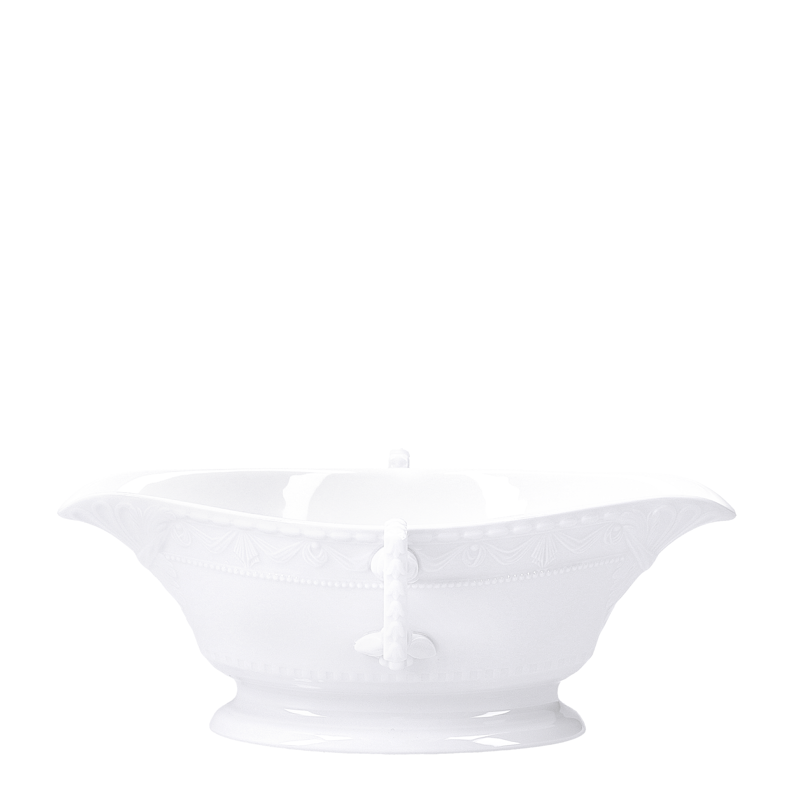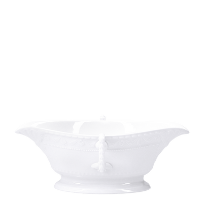 Die wunderschöne Sauciere aus dem Service KURLAND fasst 0,44 l und ist der perfekte Begleiter für ihre Festtafel im stilvollen Ambiente. Die ovale KURLAND Gurkenschale der KPM Berlin ist der passende Unterteller für Ihre Sauciere.Ganz in Weiß erstrahlt KURLAND in vollem Glanz. Die Kante der einzelnen Stücke ist dem klassizistischen Relief, bestehend aus Eierstäben, Tuchgehänge und Perlen, geziert. KURLAND ist eine Hommage an die Ideale und die Formgebung der antiken Welt, seit 1790 vereinen sich Sa