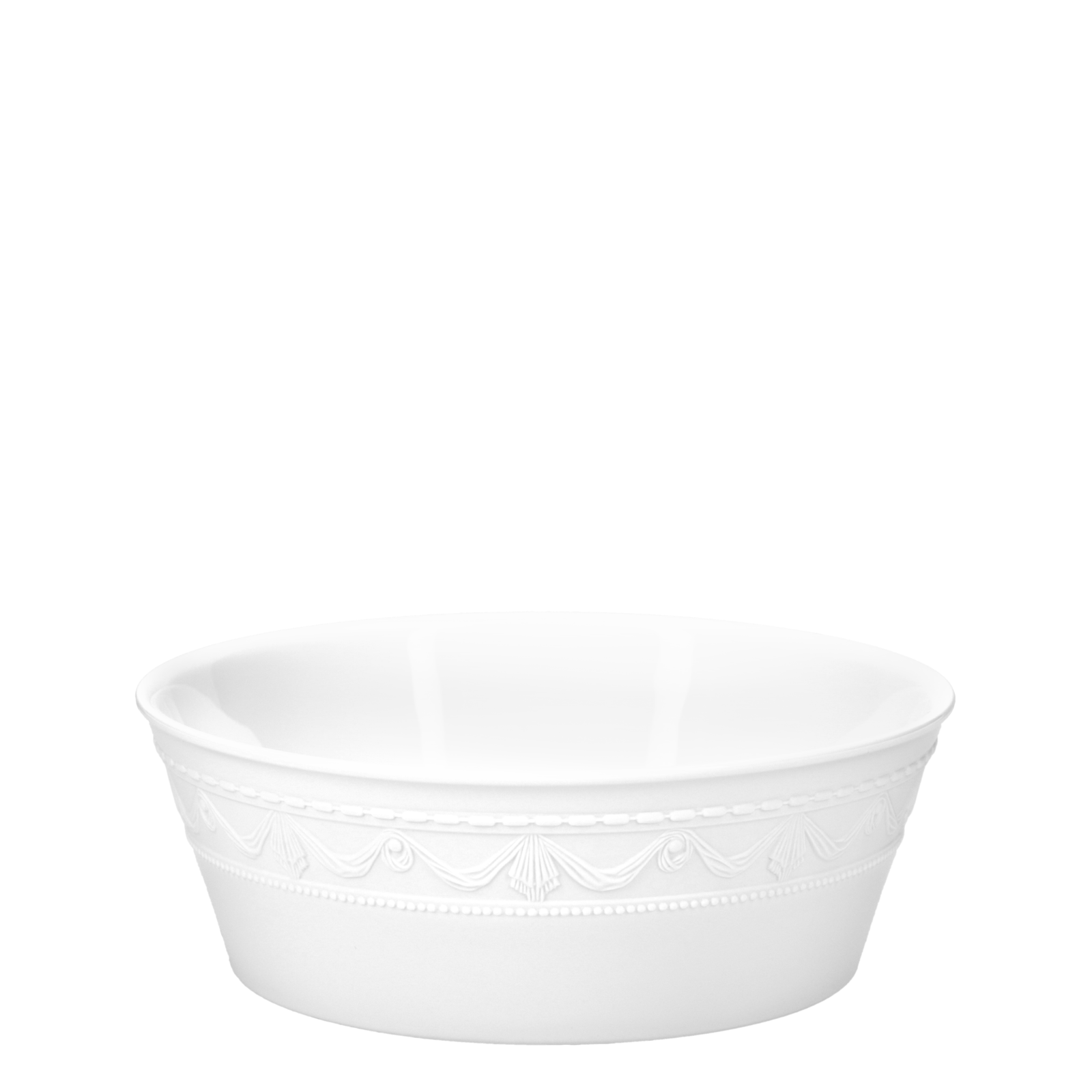 Dieser multifunktionale Allrounder inspiriert vom KURLAND Design von 1790 mit antiker Reliefborte aus Biskuitporzellan ist Ausdruck einer modernen, urbanen Esskultur, die Genuss, Regionalität und Handwerkskunst verknüpft.