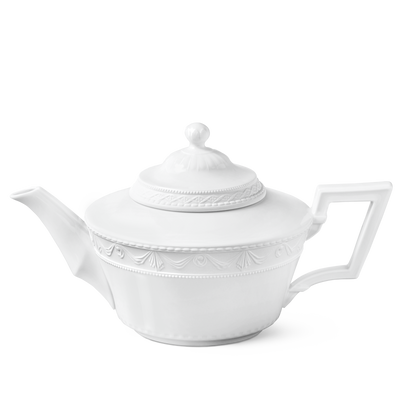 Die KURLAND Blanc Nouveau Teekanne der KPM Berlin bringt das klassische KURLAND Relief eindrucksvoll zur Geltung und lässt die Teatime zum stilvollen Vergnügen werden. Mit einem Volumen von 1,1 Litern füllt die harmonisch geformte Kanne der Königlichen Porzellan-Manufaktur Berlin acht der passenden KURLAND Blanc Nouveau Teetassen.Das edle Biskuitporzellan, das bei KURLAND Blanc Nouveau das Relief markiert, war schon vor mehr als 200 Jahren sehr beliebt. Aufgrund seiner samtenen, marmorähnlichen Obe