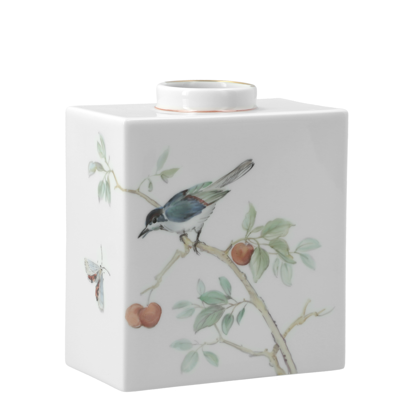 Mit der Heritage Edition Luise lanciert die KPM Berlin anlässlich des 250. Geburtstags Königin Luises von Preußen fünf in den Manufakturen am Tiergarten handgefertigte Produkte. Auf dem KURLAND To-Go-Becher, den Cadre-Vasen 0, 1 und 2 sowie der Vide Poche entfalten sich Tapetenmotive mit Verweis auf das späte 18. Jahrhundert. Inspiriert von Luises Lieblingsort Schloss Paretz übertrug die KPM-Meistermalerei exotische Blütenbäume, Vögel und Beeren mit feinem Pinselstrich auf Porzellan und verleiht der Edition Luise eine außergewöhnliche malerische Tiefe. In limitierter Auflage von 50 Stück, einzeln nummeriert, wird aus der Cadre 2 ein echtes Sammlerstück.