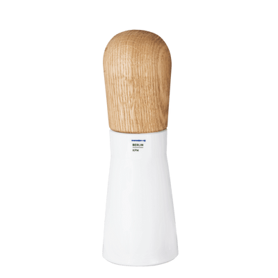 Nach dem LAB Salz- und Pfefferstreuern ergänzt die KPM Berlin die Serie um zwei ästhetisch-funktionale Gewürzmühlen. Wie für die Produkte der multifunktionalen LAB-Reihe typisch, überzeugen auch die Gewürzmühlen, zum Beispiel für Salz und Pfeffer, durch ein sinnlich-haptisches Erlebnis, welches sich durch die glänzend-glatte Glasurporzellanoberfläche des Mühlenkörpers und die natürliche Oberfläche des Echtholz-Griffes ergibt